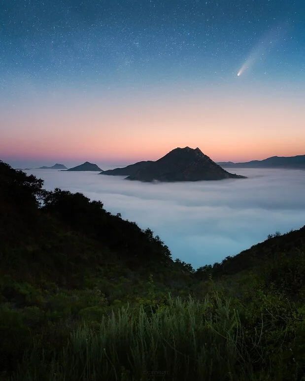Comet Neowise over Bishop Peak and the Cerros during a cloud inversion, 2020.